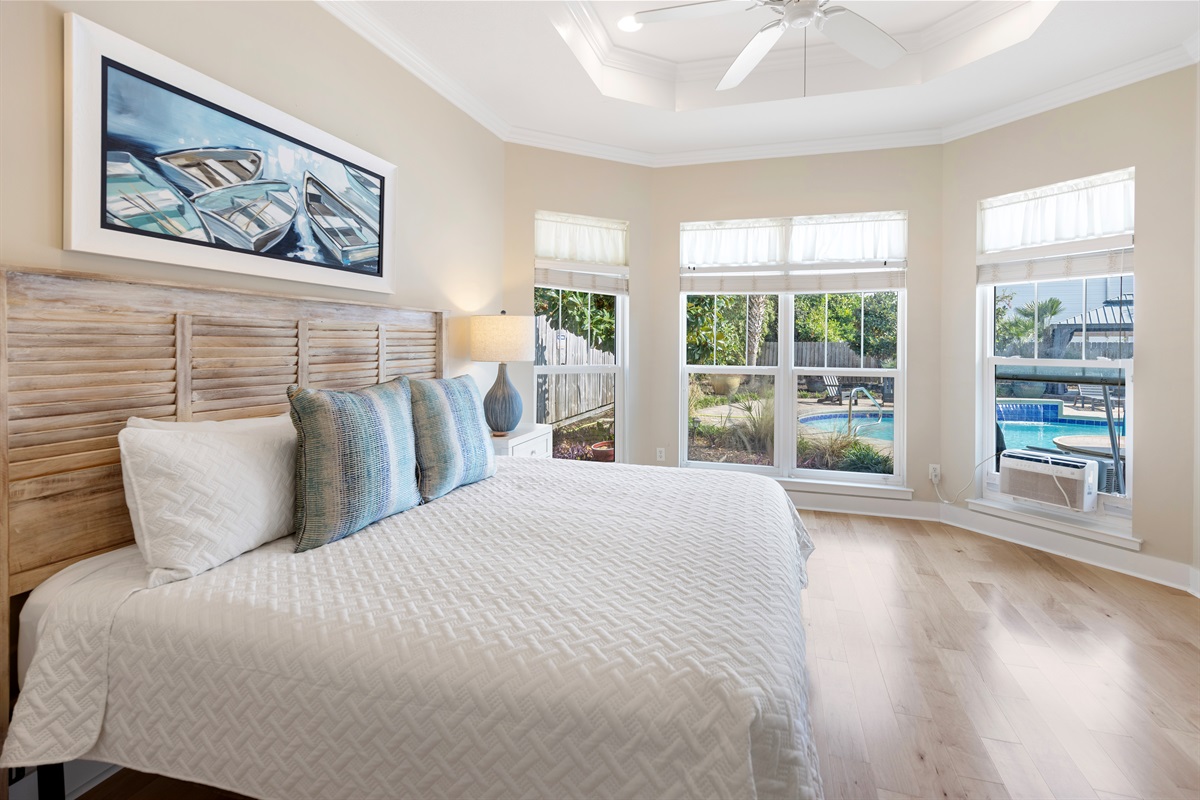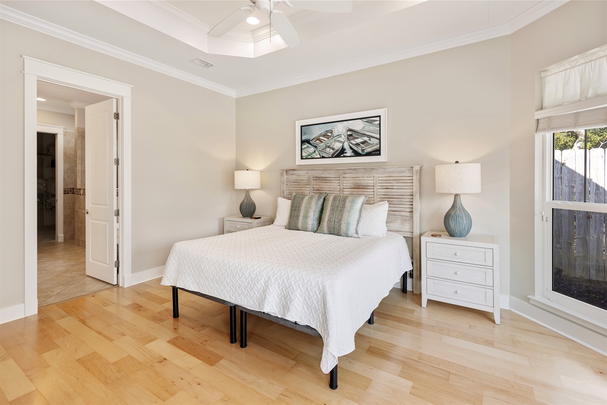 Step outside to your private backyard paradise — one of the largest and most secluded lots on PCB’s west end!