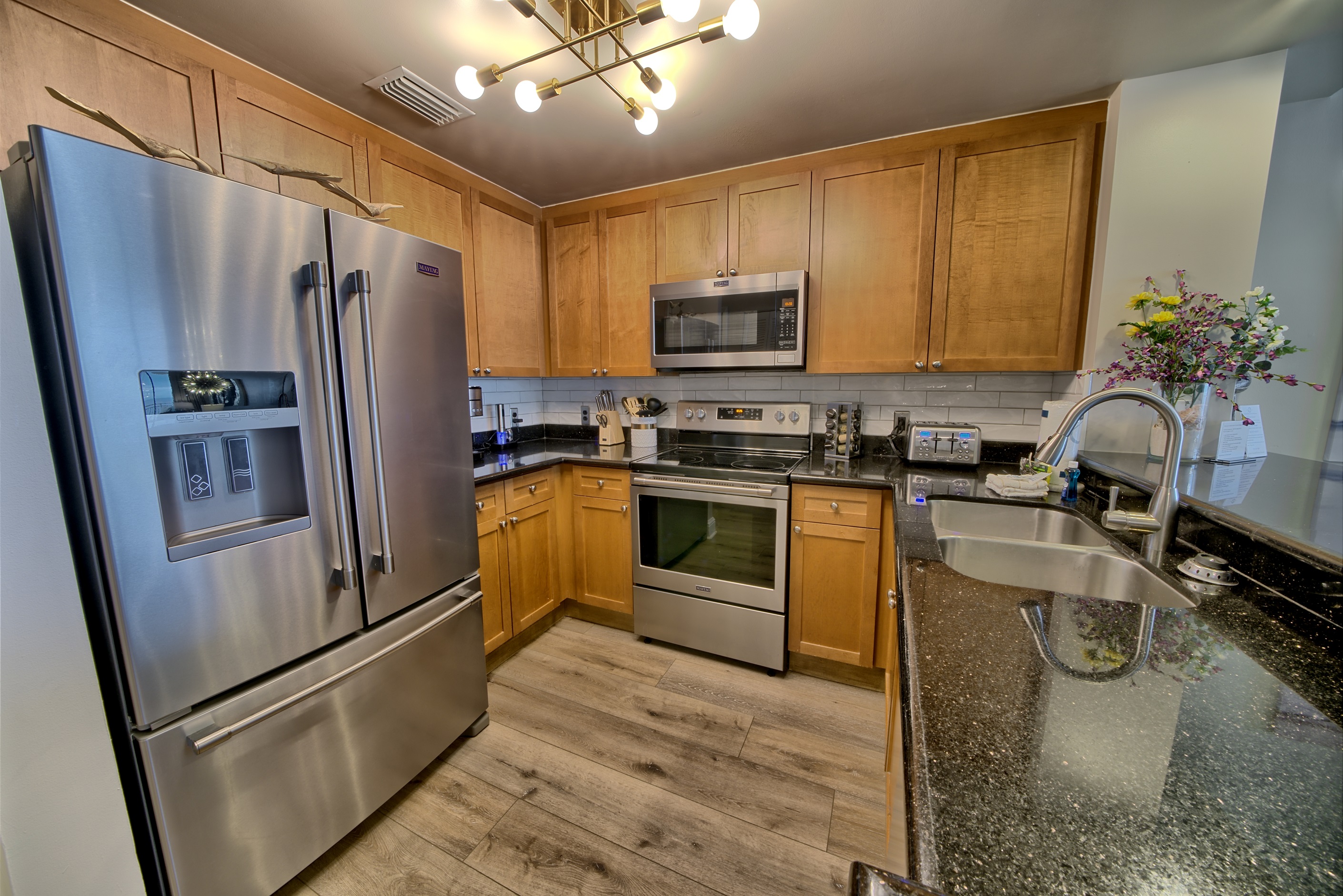Enjoy cooking in your fully equipped kitchen with granite countertops, stainless steel appliances, and all the essentials for family meals or beach-day snacks. Open-concept design keeps everyone connected while dining or lounging together.