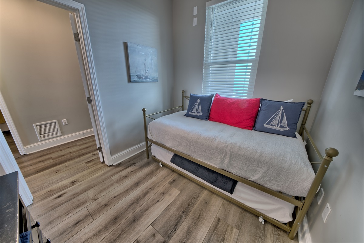 Bunk Area – Twin daybed with trundle (2 twins) – perfect for kids! (Note: Not a private room)