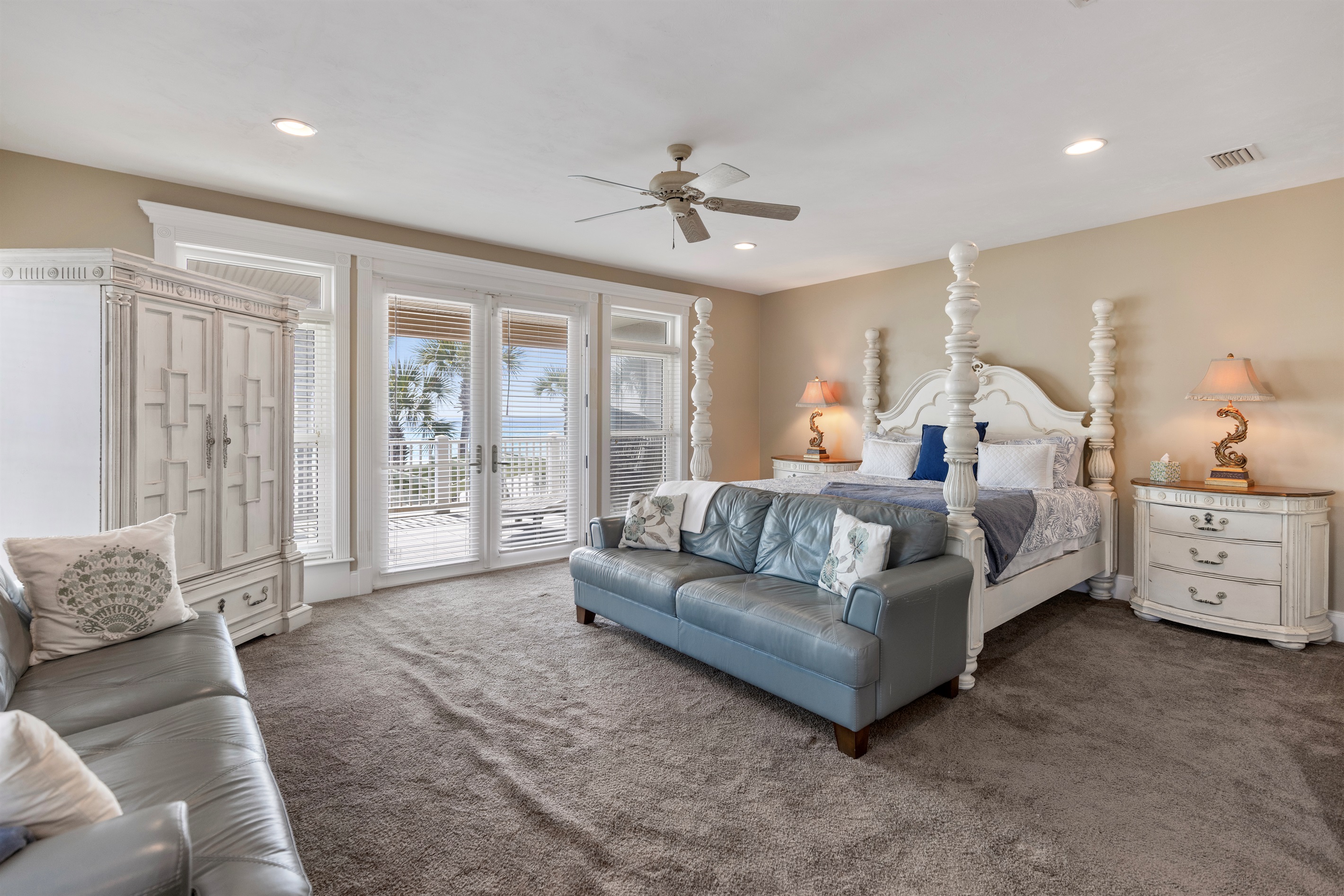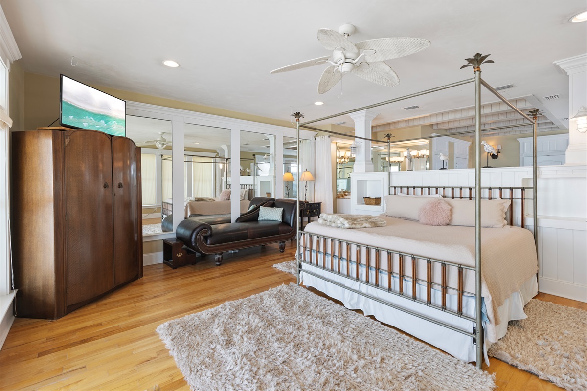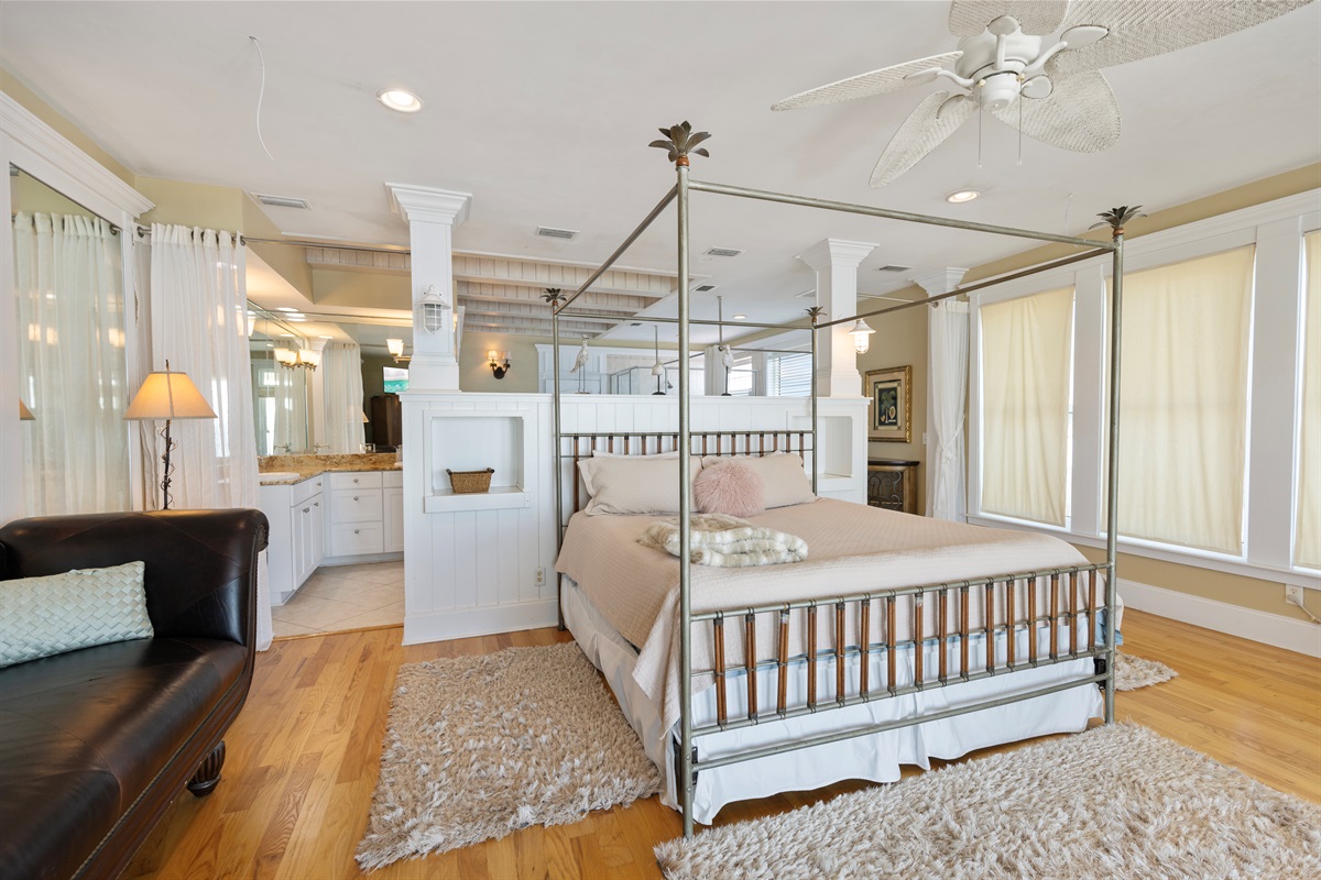 Primary Suite (Fourth Floor): King bed and ensuite bath, private balcony, reading nook, elevator access, breathtaking Gulf views