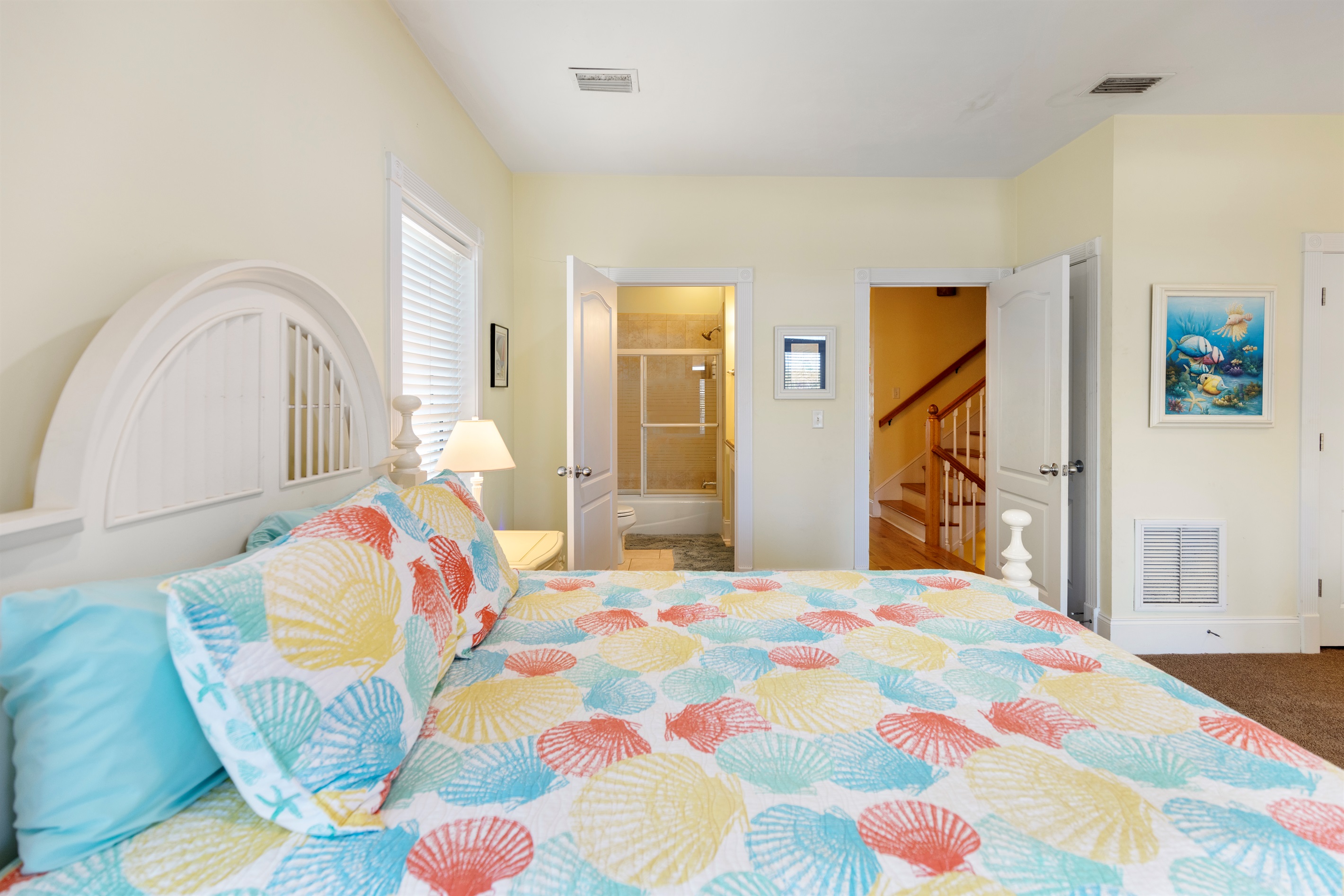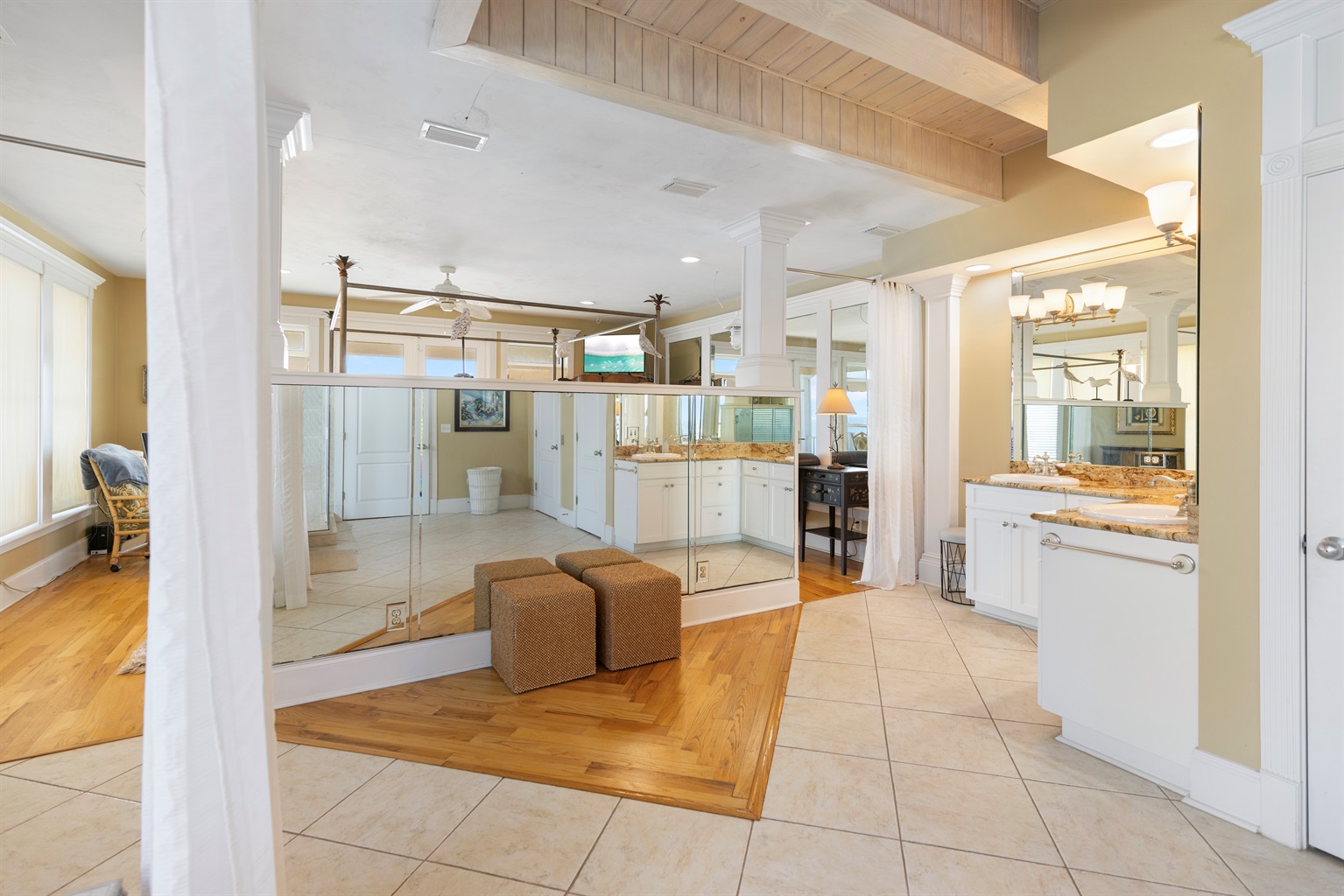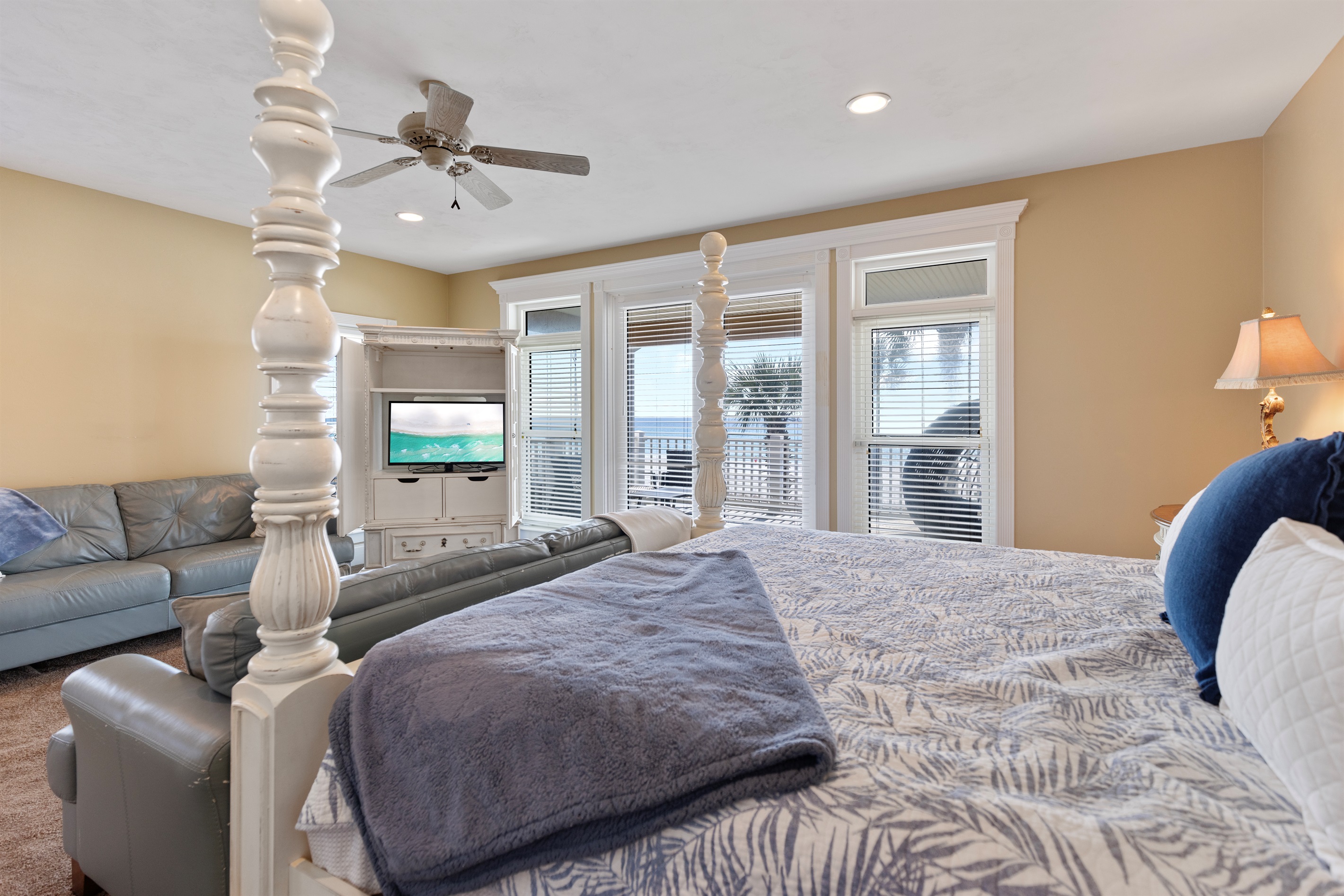 Primary Suite (Fourth Floor): King bed and ensuite bath, private balcony, reading nook, elevator access, breathtaking Gulf views