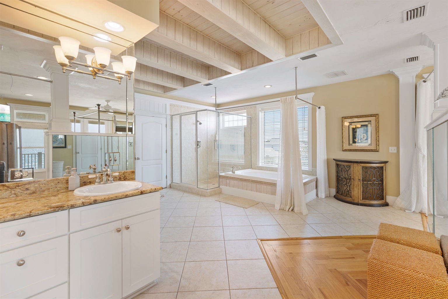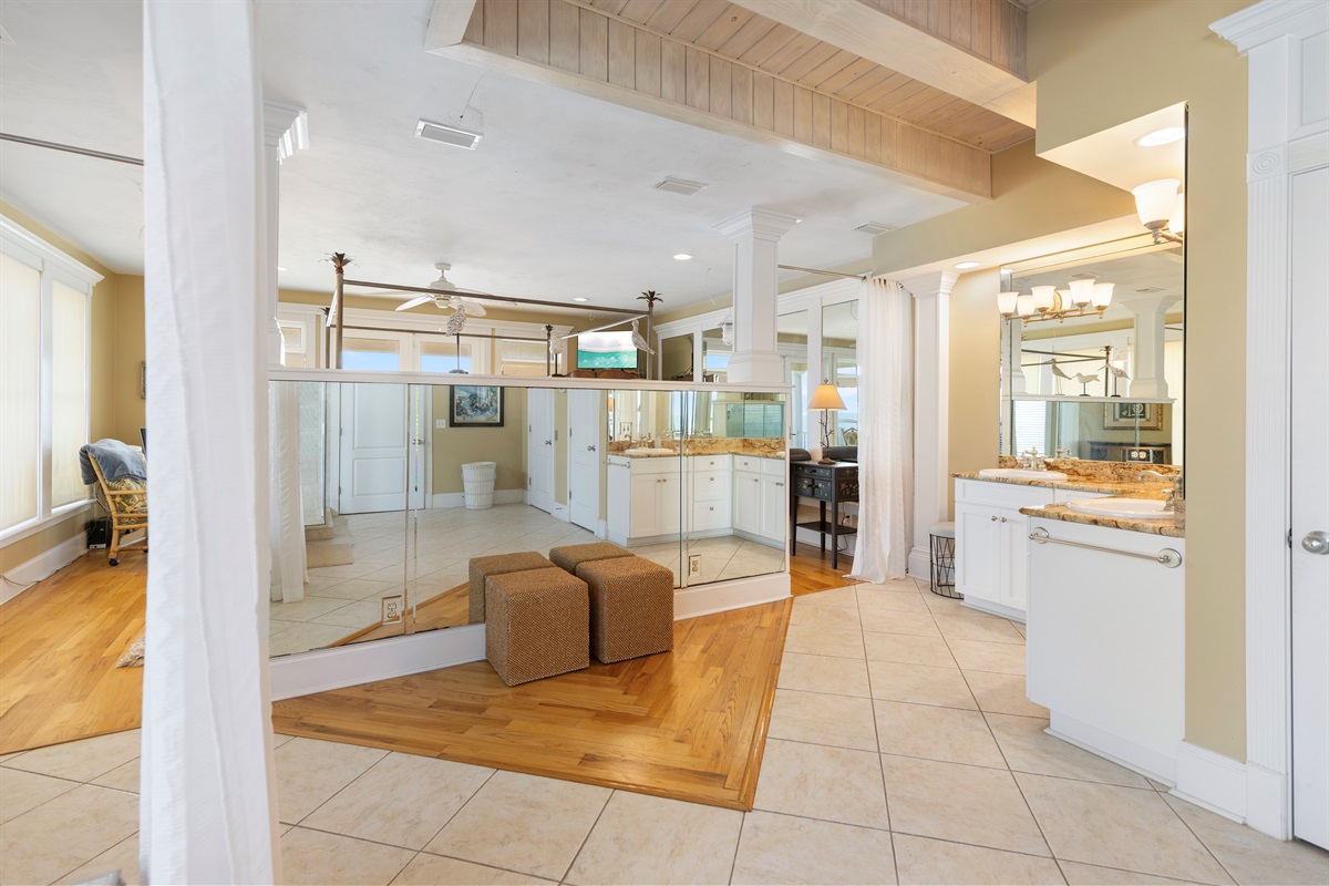 ⭐ The entire fourth floor is dedicated to an expansive primary suite, offering a true owner’s retreat. Wake up to breathtaking Gulf views from the king bed, unwind in the cozy reading nook, and enjoy a spa-like bathroom with a Jacuzzi whirlpool tub and an oversized walk-in closet. It’s the perfect sanctuary after a day spent in the sun. At the top of the home, the Media Room sets the stage for movie nights and game-day fun, while the open-air deck provides a stunning backdrop for sunset gatherings and evening cocktails with the Gulf as your horizon.